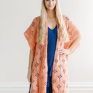Add an incredibly elegant statement to any outfit with the Marigold Bloom Shawl. Crafted in a soft salmon pink, this shawl features four stunning square motifs joined seamlessly on the back (no sewing required), while the front panels display a matching floral filet pattern that flows gracefully. Finished with delicate fringe, this shawl is a perfect combination of classic crochet techniques. Pair it with a spring dress or jeans and a T-shirt for a piece that truly elevates any ensemble.