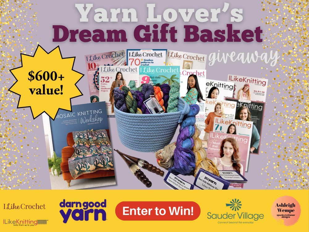 Calling all knitters and crocheters, we’re delighted to unveil the 2026 Yarn Lover’s Dream Gift Basket Giveaway, a yearlong celebration of creativity, color and the vibrant community that makes the yarn world one of the friendliest communities to be a part of. Whether you’ve been crocheting and knitting for years or you want to start a new hobby, this overflowing prize package is designed to inspire.