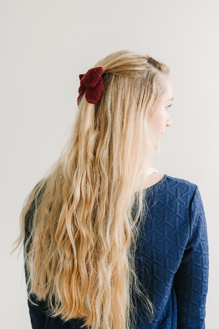 Add a touch of feminine elegance to any outfit with the Butter & Bordeaux Hair Bows! This simple pattern creates slightly oversized bows that are both charming and cozy. The clever construction lets you crochet the ribbon ends separately from the bow, so you can position them exactly how you like. No tying required! Make this sweet barrette in one or both colors so you have the perfect accessory no matter the outfit.