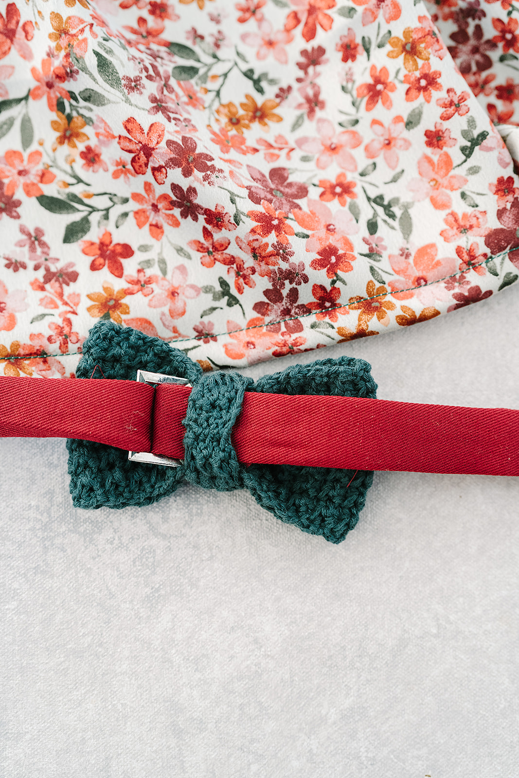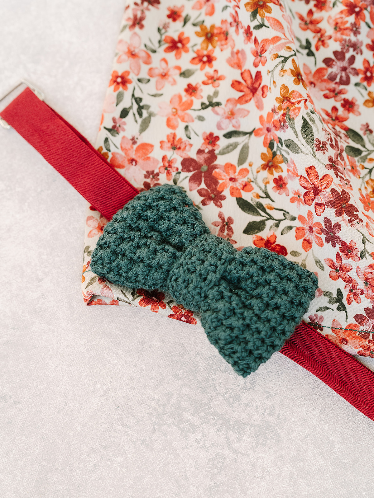 If using a ribbon, cut to desired length + 1”. Thread the bow tie onto the ribbon, fold ends of the ribbon twice to conceal the raw edges. Sew the hook & loop closure along the edges.