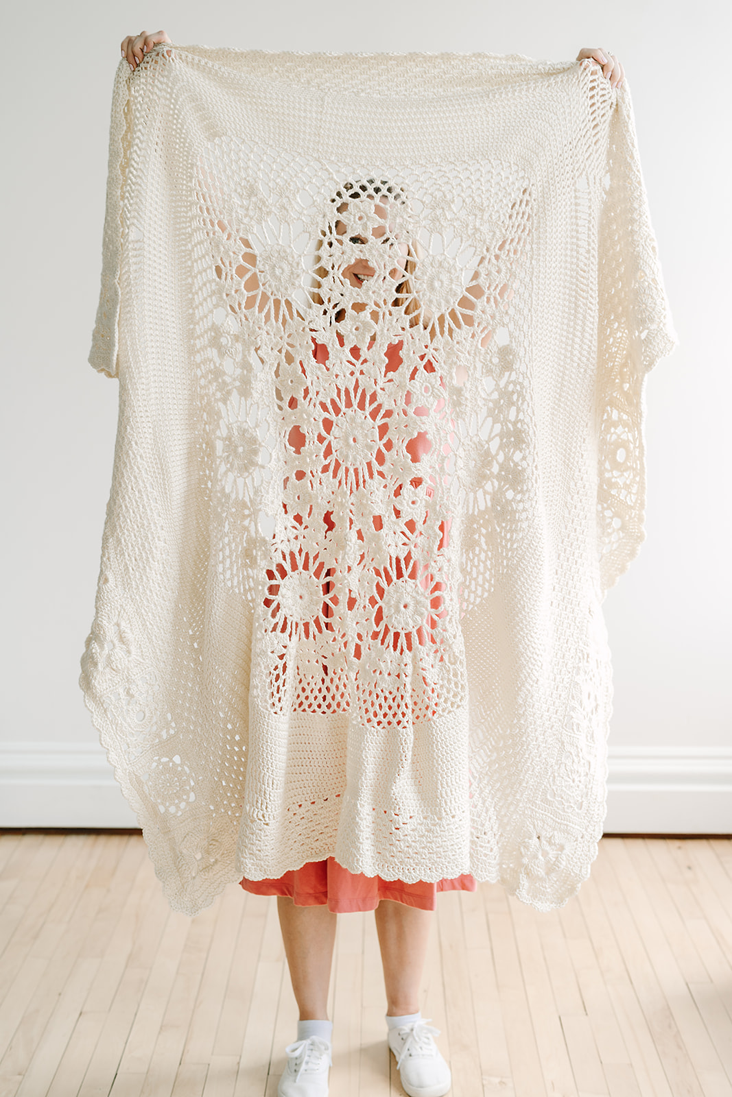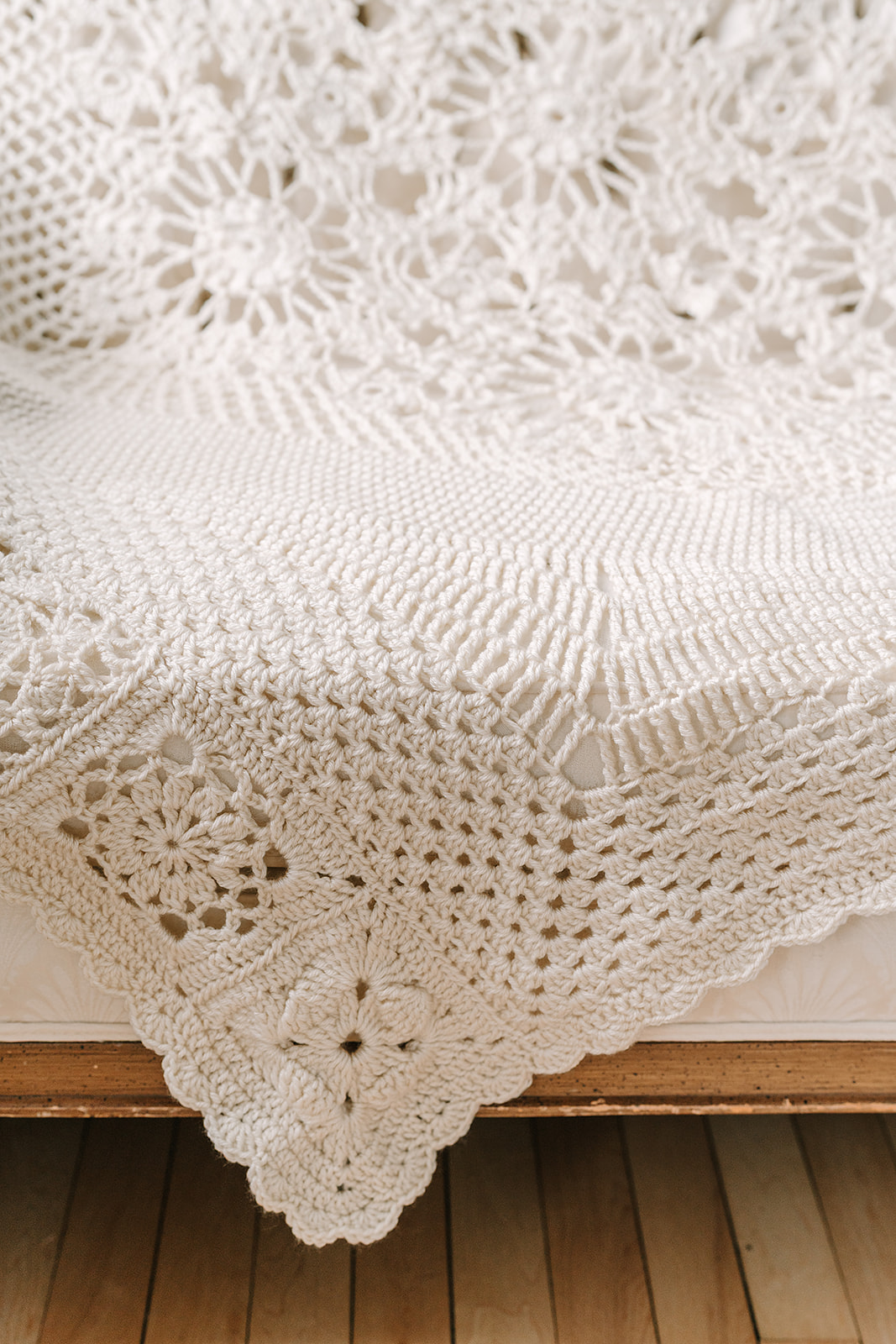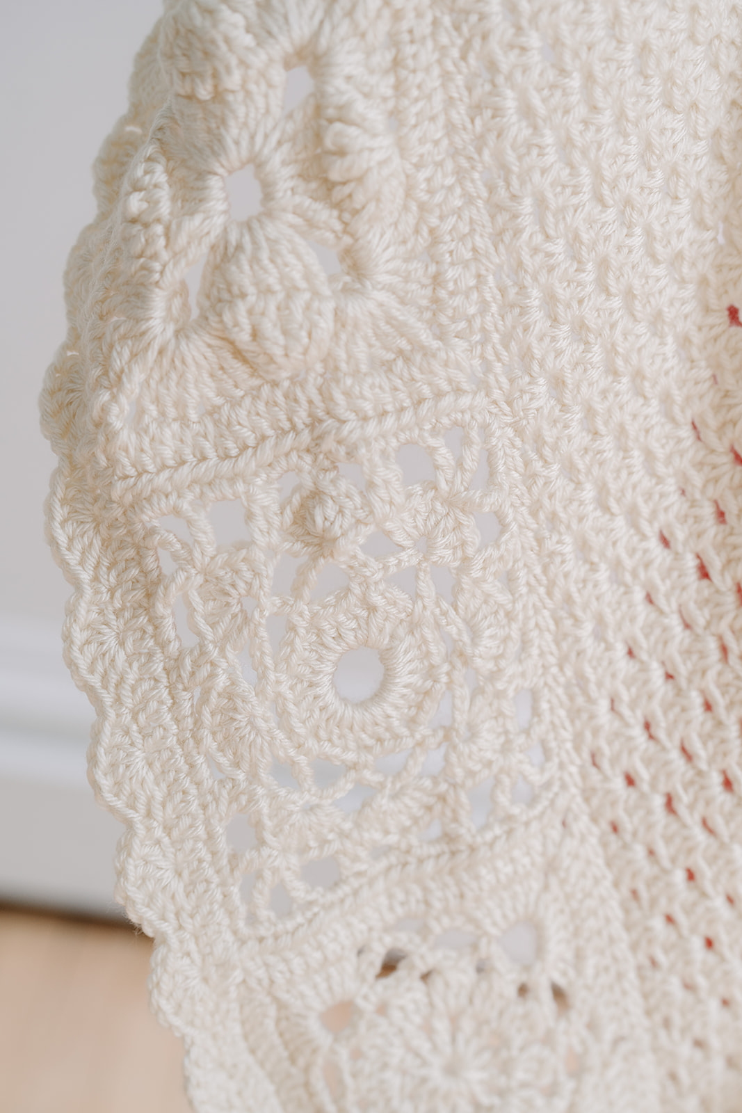 Weave in the ends. Steam-block the blanket to open up the lace.