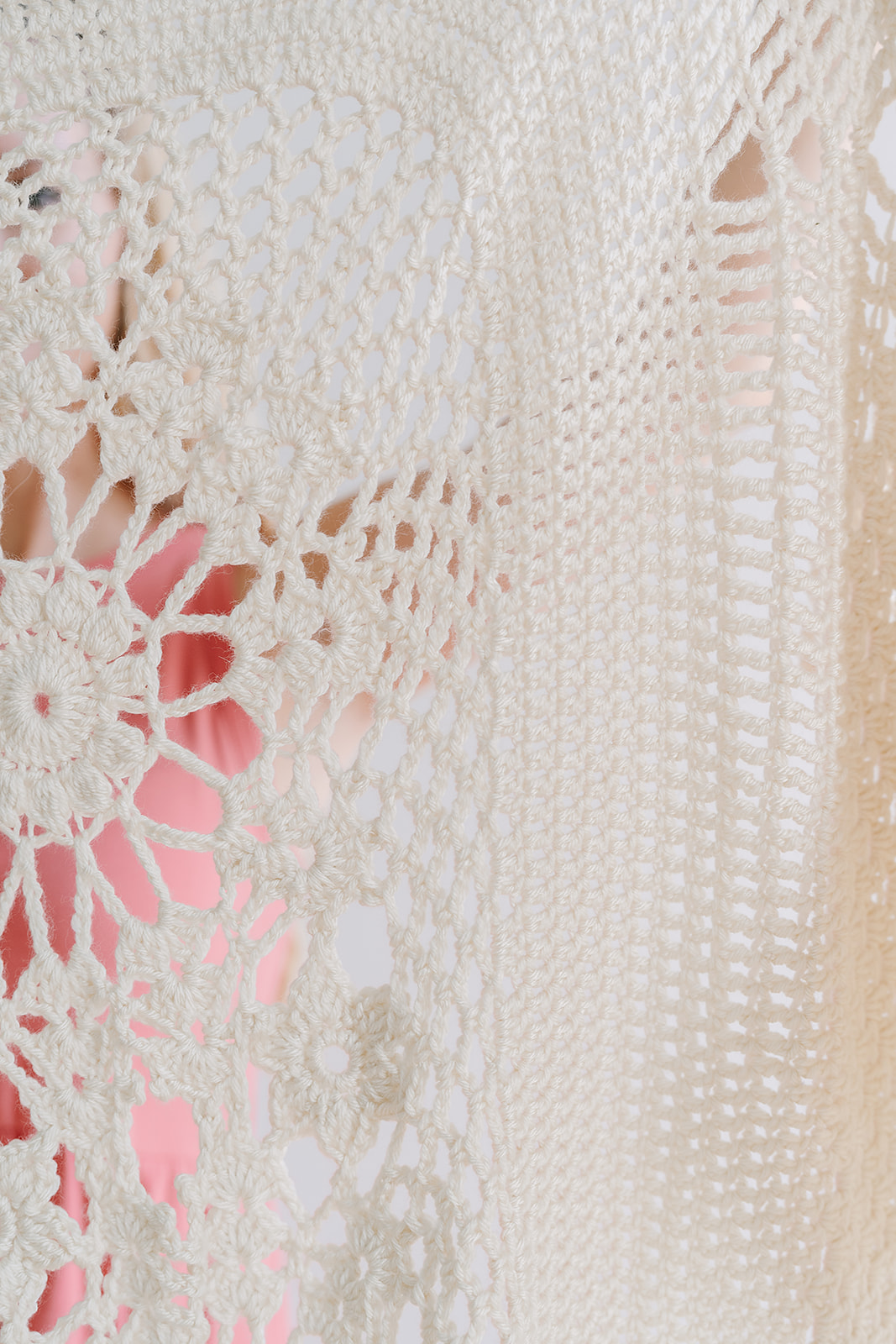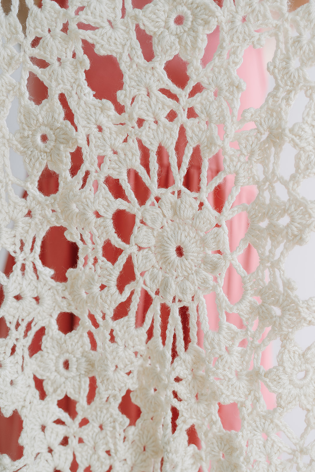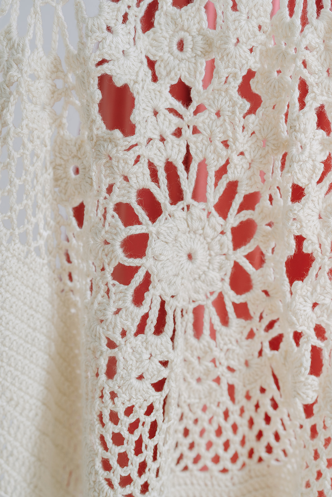 Weave in the ends. Steam-block the blanket to open up the lace.