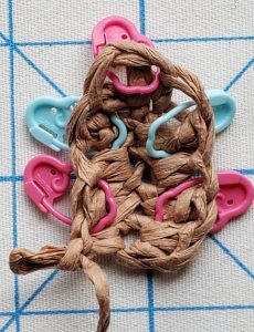 Notions: One 12-inch brass plated metal ring from www.pepperill.com ; Clover #3031 Medium Quick Locking Stitch Markers, 36 from www.clover-usa.com ; tapestry needle.