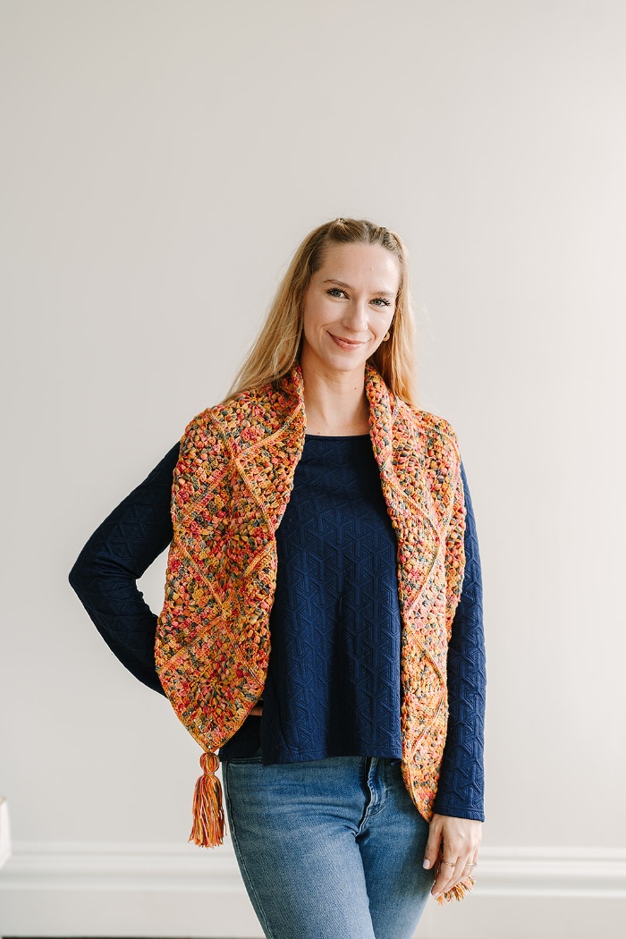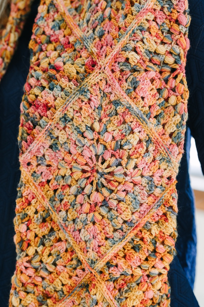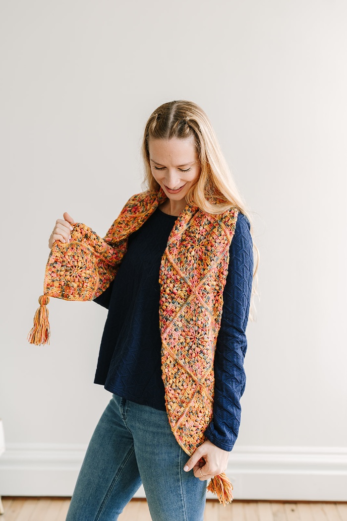 Craft a vibrant scarf entirely in granny squares with the Joyful Granny Tassel Scarf. This gorgeous pattern features soft, variegated yarn, showcasing a delightful blend of colors that transition seamlessly throughout the piece. Once the motifs are joined, fold and seam the scarf for additional warmth and reversibility. Embellish each end with a tassel for a perfect playful touch.