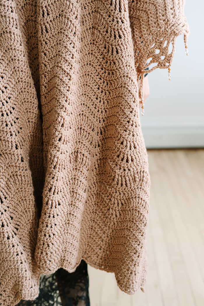 Size: One Size Fits Most – 51” wide x 68” long measured flat not including beads.
