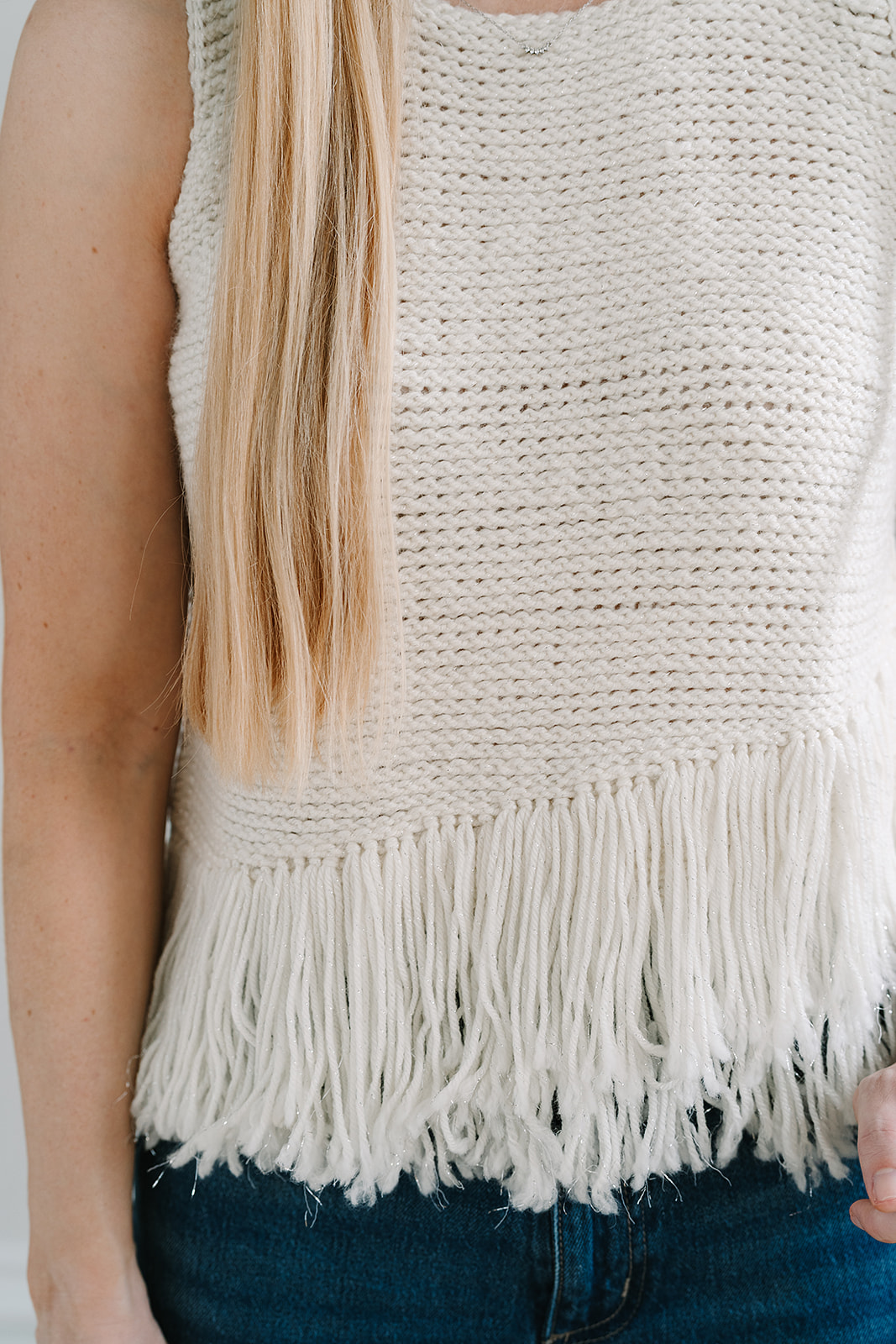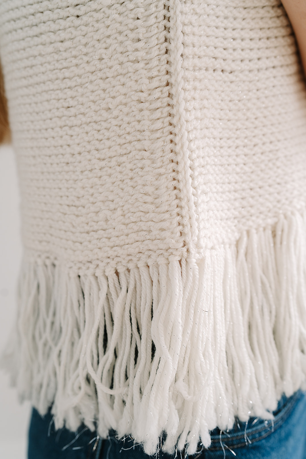 Fringe is cut and added along the hem for a soft finish.