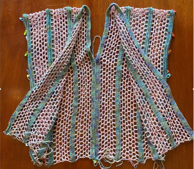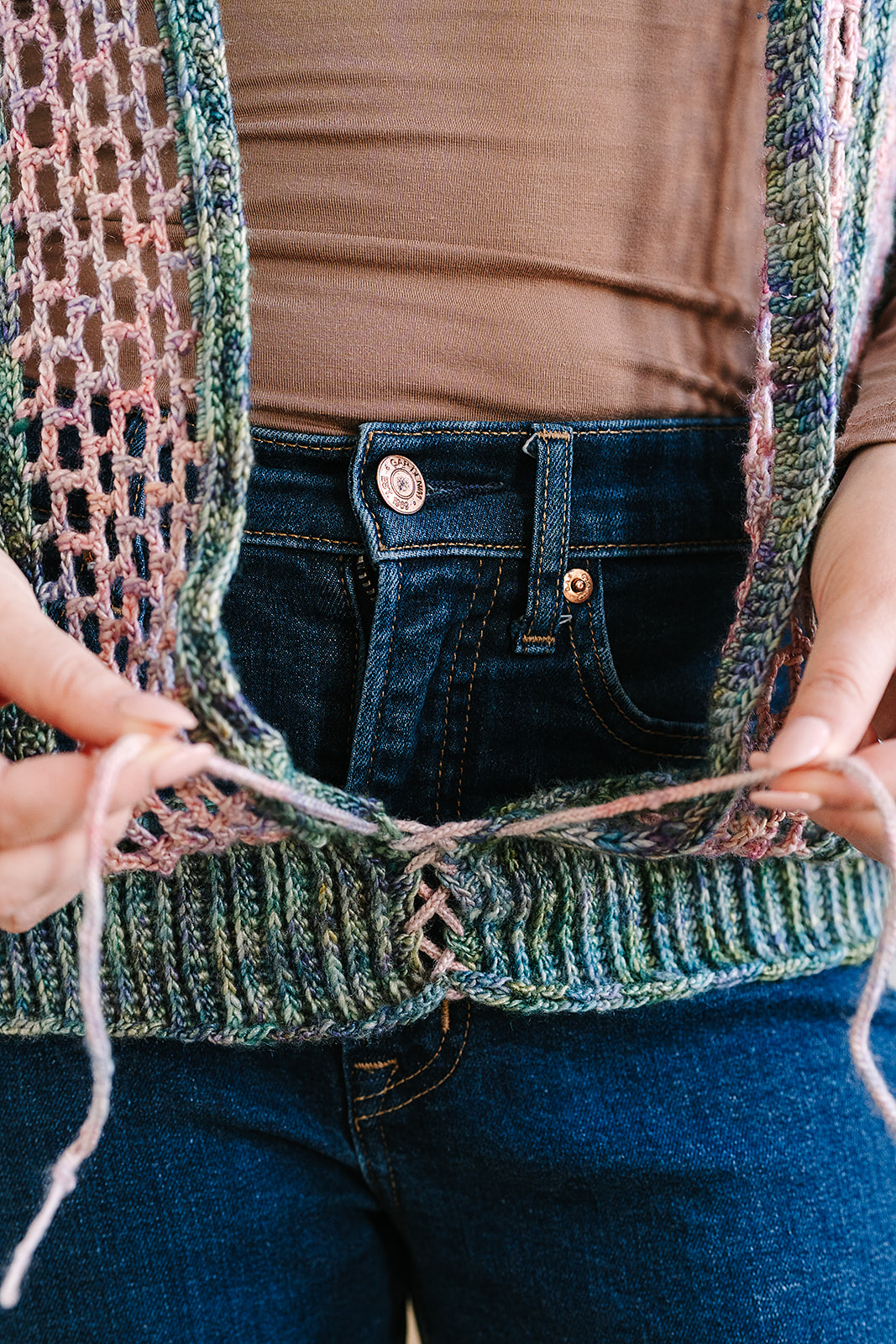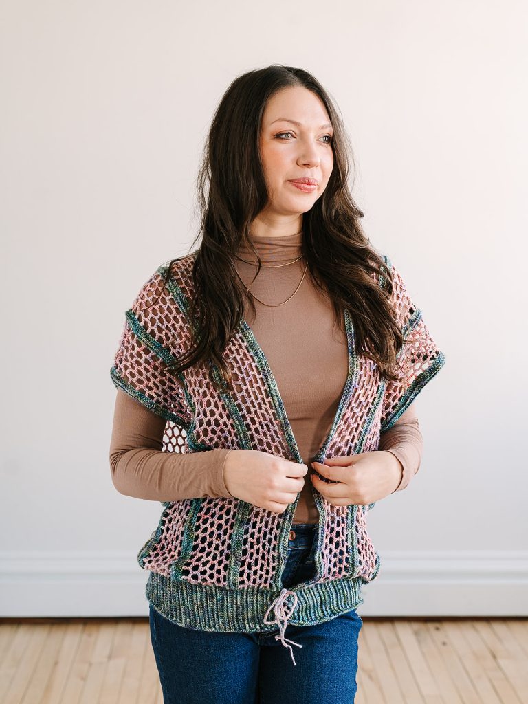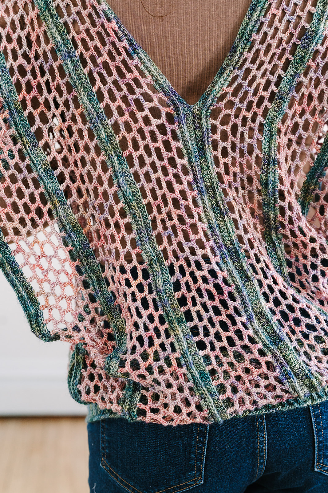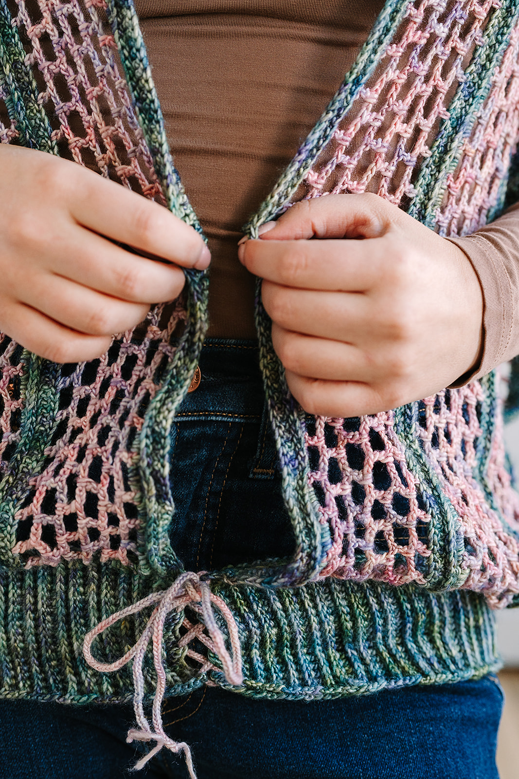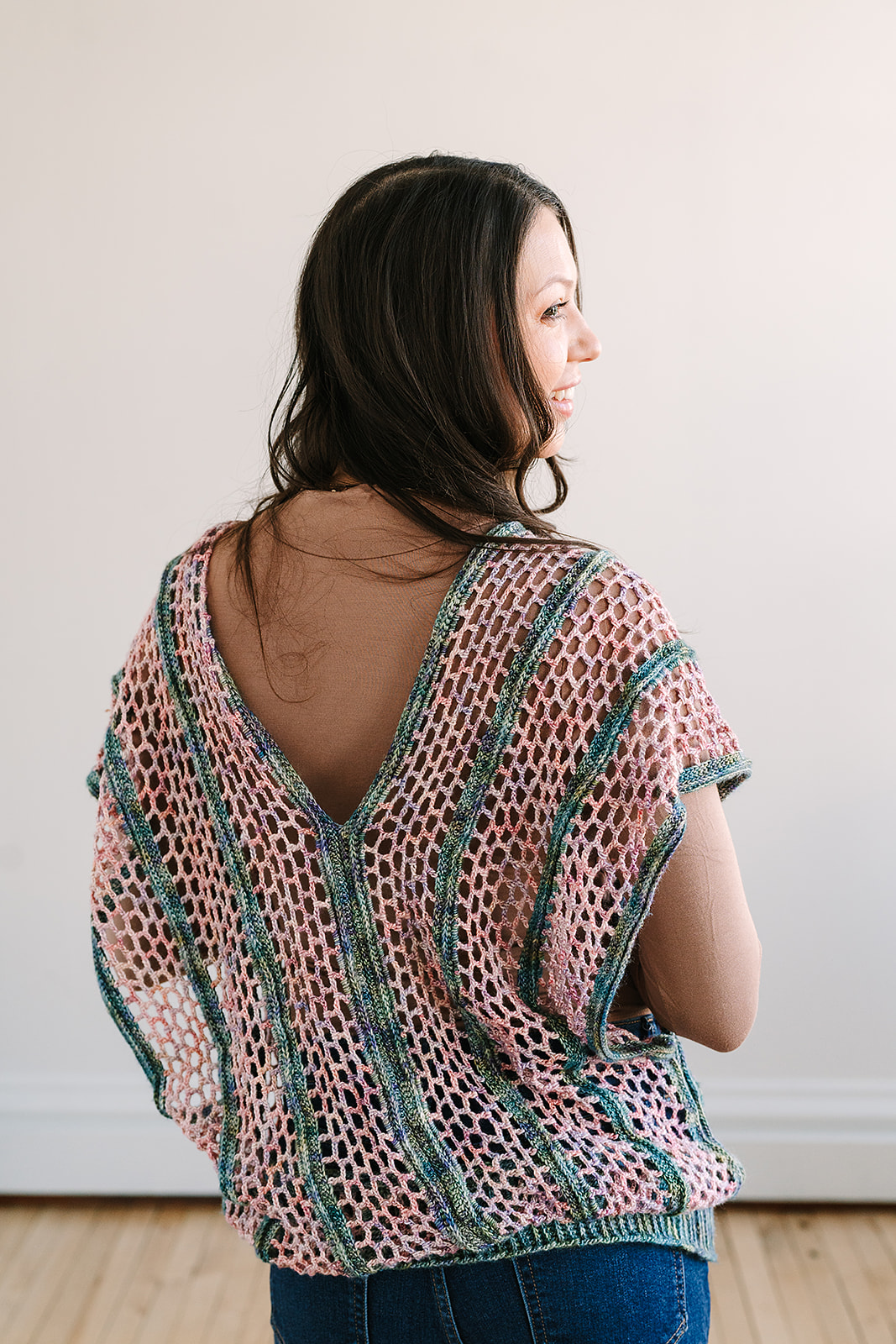 Meet the Twilight Mesh Top, a versatile layering piece for the changing seasons. Inspired by the dusky hues of a cool spring evening, this design features an airy fabric and a flowing silhouette created with two simple rectangles for an easy, enjoyable crochet experience. A cinched waistband gathers the fabric at just the right place, creating a billowing effect that is both flattering and comfortable. Wear it pinned at the front or open for a relaxed look that transitions effortlessly from day to evening.