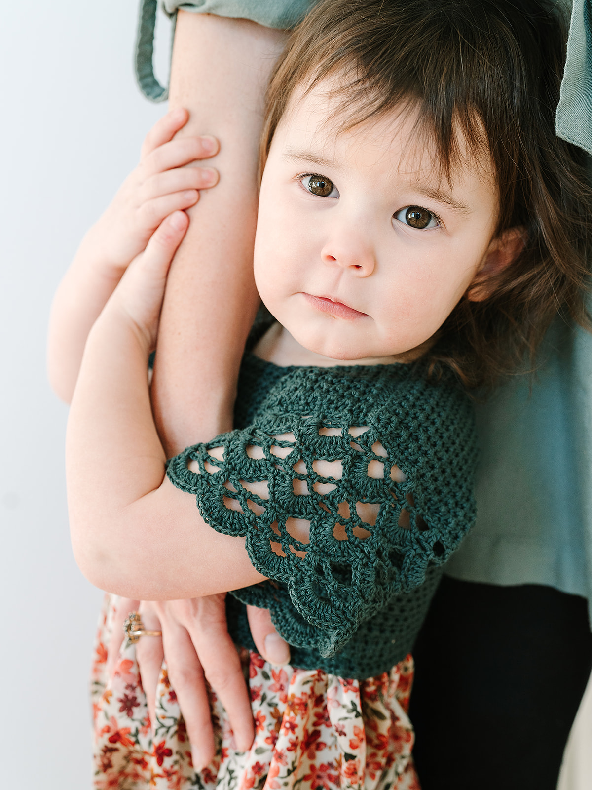 Get ready for your next set of family photos with the Trinity in Bloom Crochet Collection. This coordinated set includes an adult dress, a child’s dress, an adult necktie and a child’s bow tie. Each design is worked in the same yarn and stitch, creating a cohesive matching look. View the complete collection here.
