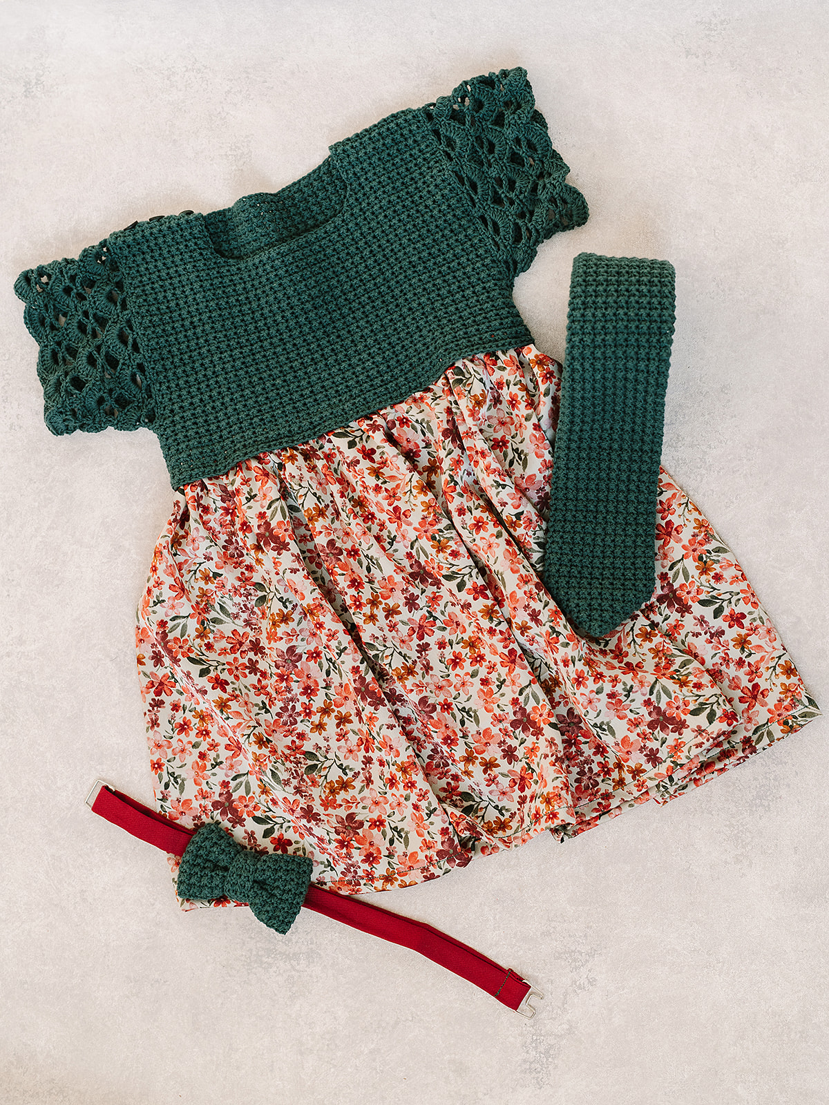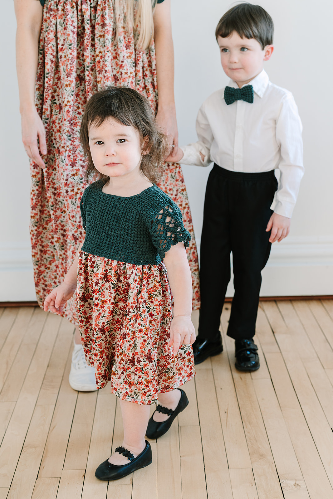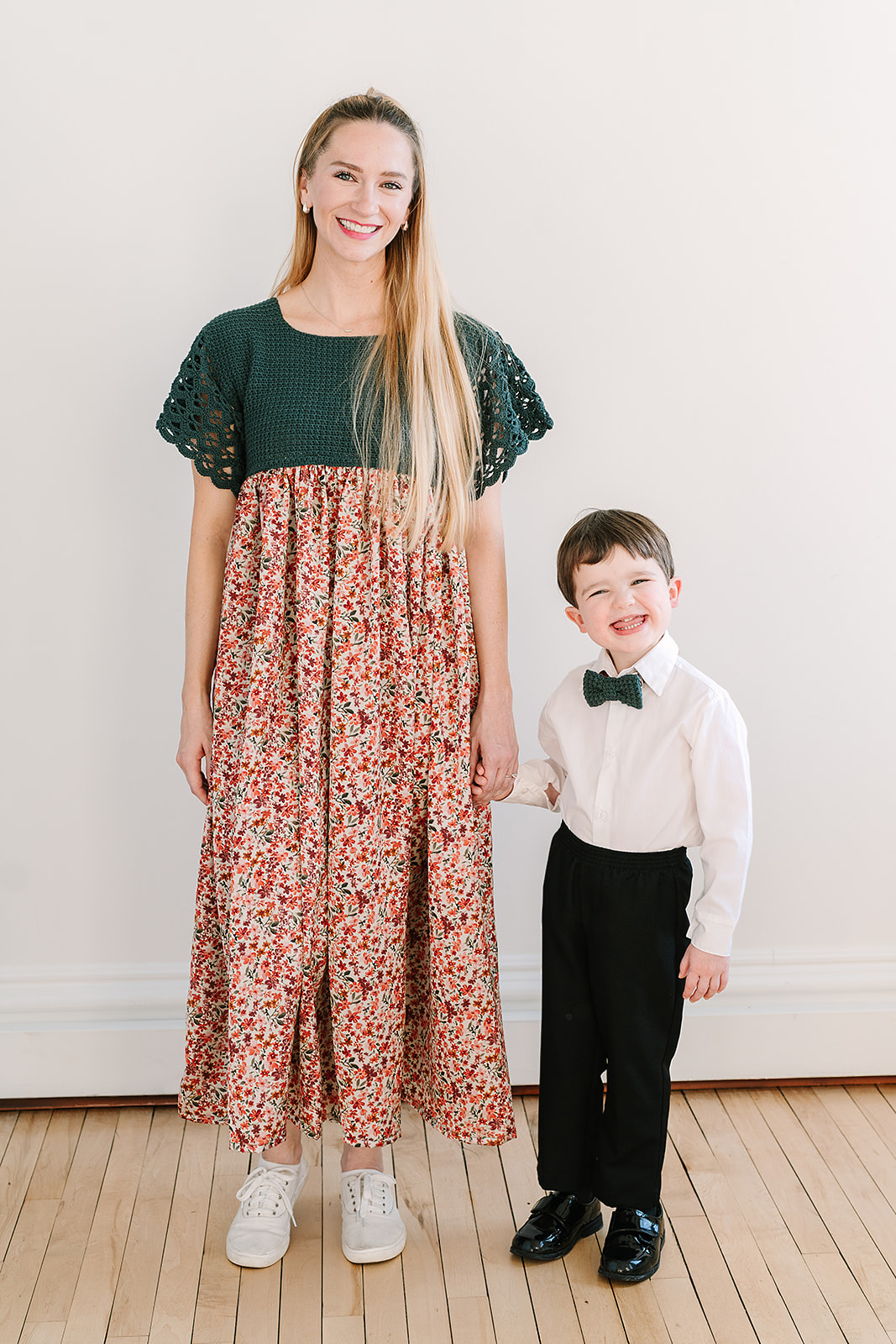 Get ready for your next set of family photos with the Trinity in Bloom Crochet Collection. This coordinated set includes an adult dress, a child’s dress, an adult necktie and a child’s bow tie. Each design is worked in the same yarn and stitch, creating a cohesive matching look. View the complete collection here.