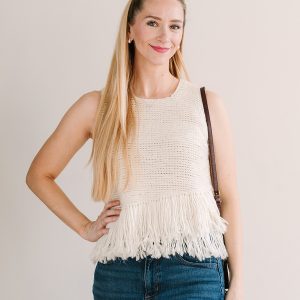 Work up your first Tunisian crochet garment with the Fringe Effect Tank. This sleeveless tunic puts a fresh spin on Tunisian texture by showcasing the wrong side of the fabric, creating a naturally nubbly surface that feels modern and organic. Angled fringe, attached and trimmed after assembly, adds gentle movement and forms a soft, tiered hemline. With its breezy silhouette and straightforward construction, this tank makes a perfect first garment project.