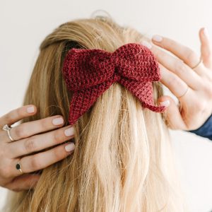 Add a touch of feminine elegance to any outfit with the Butter & Bordeaux Hair Bows! This simple pattern creates slightly oversized bows that are both charming and cozy. The clever construction lets you crochet the ribbon ends separately from the bow, so you can position them exactly how you like. No tying required! Make this sweet barrette in one or both colors so you have the perfect accessory no matter the outfit.
