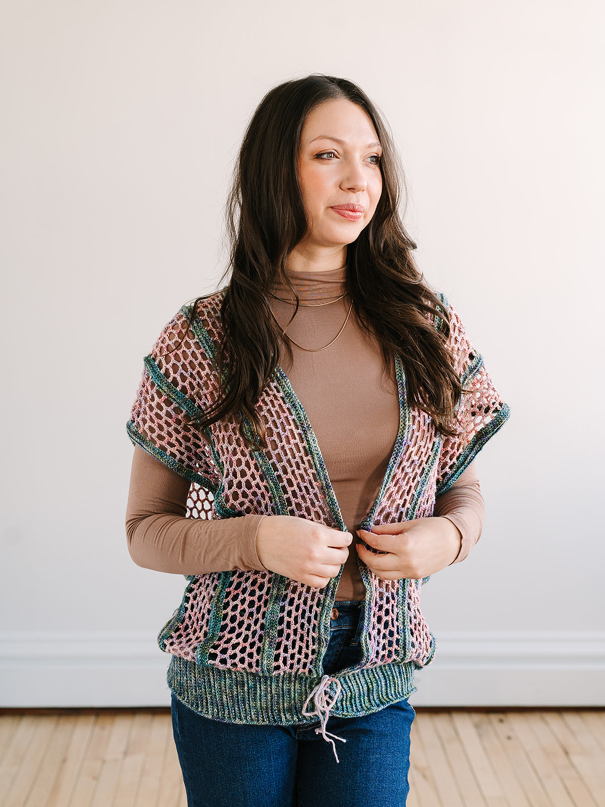 Meet the Twilight Mesh Top, a versatile layering piece for the changing seasons. Inspired by the dusky hues of a cool spring evening, this design features an airy fabric and a flowing silhouette created with two simple rectangles for an easy, enjoyable crochet experience. A cinched waistband gathers the fabric at just the right place, creating a billowing effect that is both flattering and comfortable. Wear it pinned at the front or open for a relaxed look that transitions effortlessly from day to evening. Read More